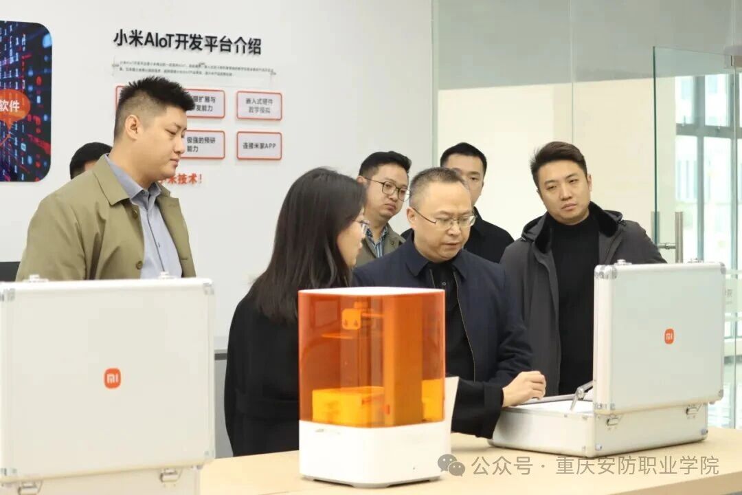 近日,上海合作组织国家多功能经贸平台教育工作联盟与小米集团产教融合秘书处代表一行莅临我校考察交流,在校领导陪同下实地参观了小米产业学院、安防科技体验馆、无人机组调维修实训室等教学设施,深入了解我校在安防领域的专业建设成果和办学特色。上合组织教育工作联盟常务秘书长毛德林率领代表团出席,小米集团产教融合秘书处西南区副总经理邓佳祺等企业代表围绕安防人才国际化培养展开深入交流,就推进产教融合、拓展国际合作等议题达成多项共识。
