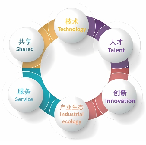 安防科技产业园以技术、⼈才、创新、产业⽣态、服务、共享为园区运营理念, 打造以产业⽣态和共享为特⾊的可持续发展的安防产业⽣态社区