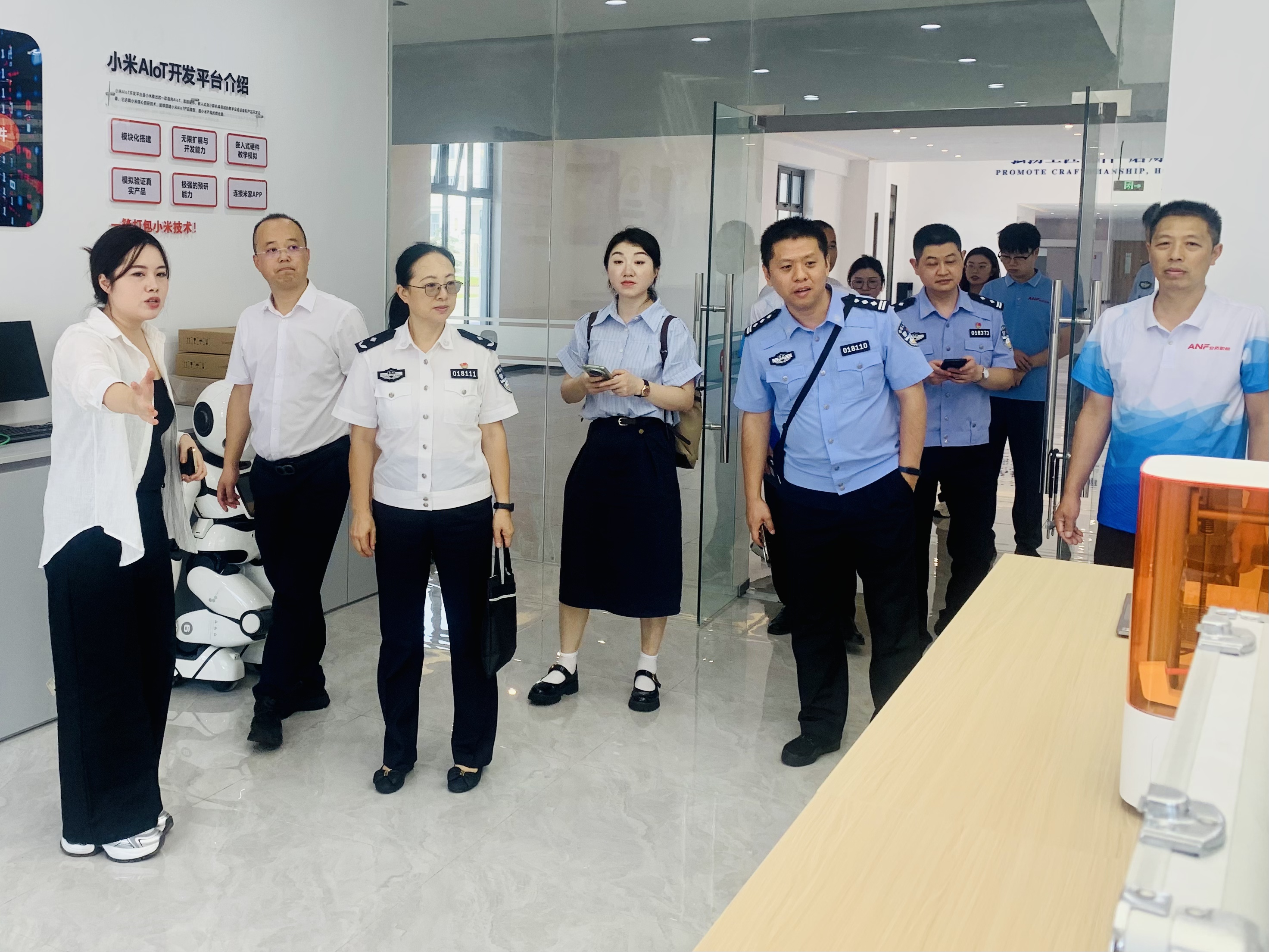 交流伊始,pp电子游戏官网领导陪同重庆警察学院专家团队,参观小米产业园、安防科技体验馆、AI智慧物联实训室、无人机组调维修实训室等实训场所,了解实践教学成果。