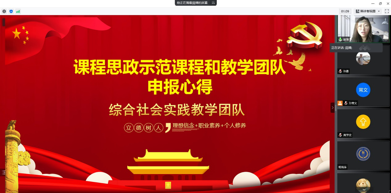 为了进一步落实立德树人根本任务、不断提高课程思政育人效果、发挥课程思政示范项目的示范引领作用,3月29日下午,bat365中文官方网站在线召开了课程思政示范课程建设与申报经验交流会,城乡规划教研室副主任庞博老师受邀做了题为“课程思政示范课程和教学团队申报心得”的讲座,bat365中文官方网站全体教师参加了会议。
